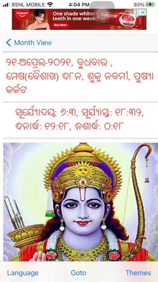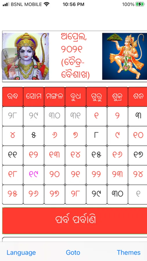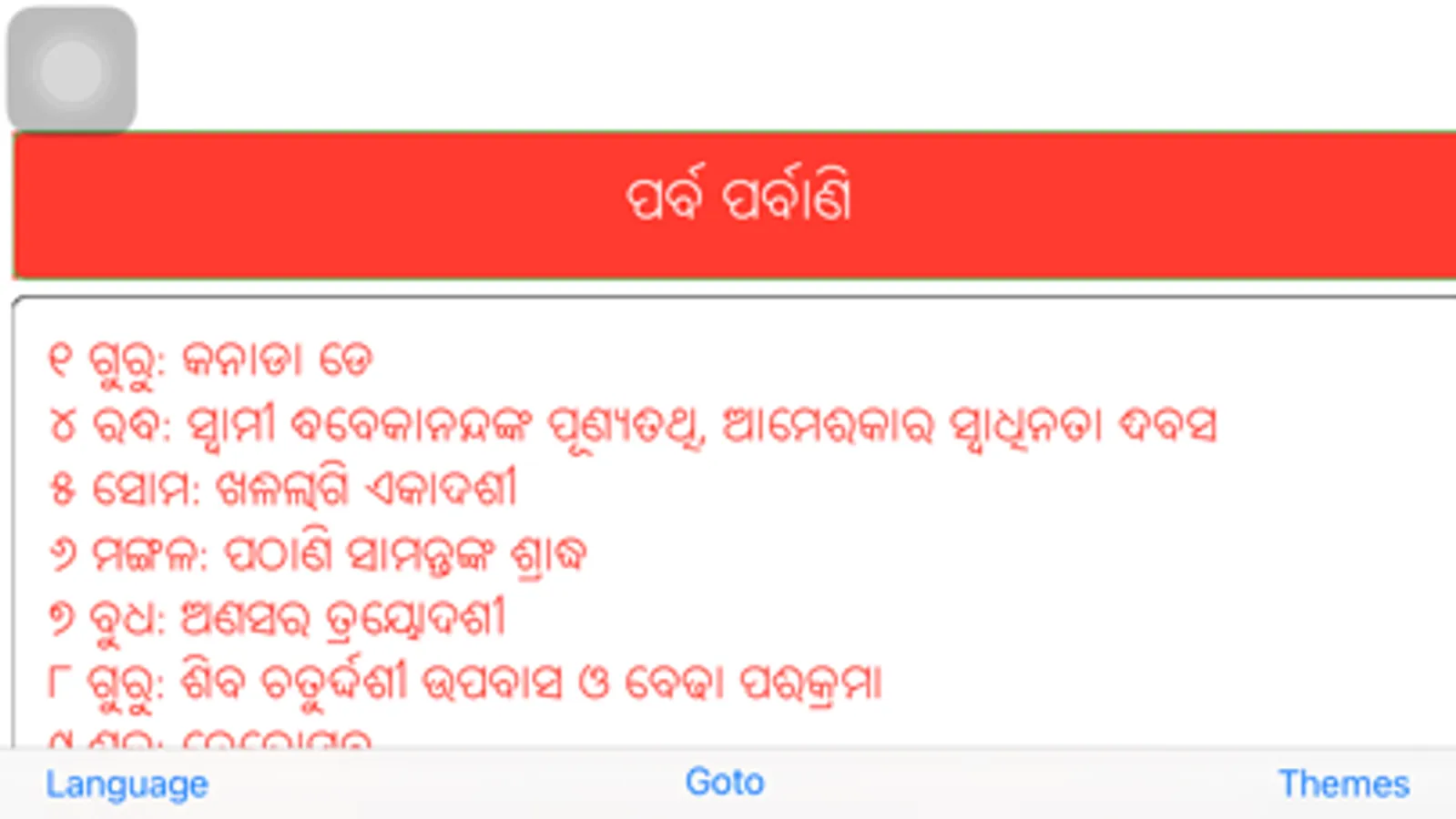 The most important feature of this calendar application is that this is completely in Odia (Oriya) language. It also supports description of the details in English.