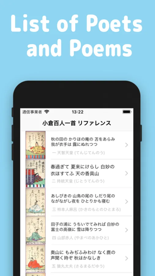 This app is easy to see poem card of Ogura Hyakunin Isshu.
