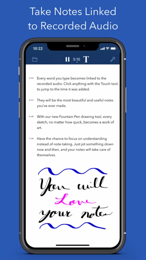 AudioNote links the notes you take to the audio recorded when you take them. The result is a linked index of your recording that quickly provides invaluable audio context for your notes.