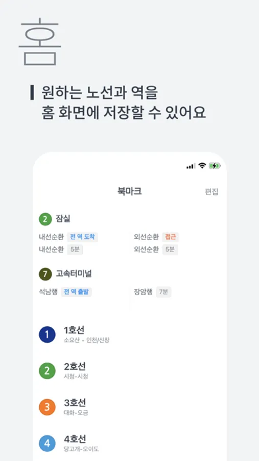 모아보기를 통해 자주 이용하는 역을 등록시켜 한번에 확인할 수 있습니다.