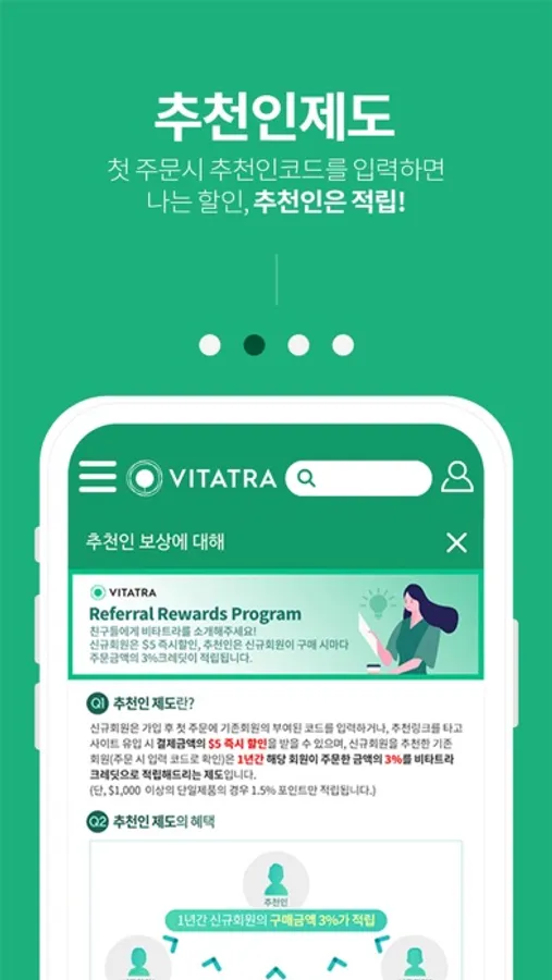 * 추천인 제도 - 첫 주문 시 추천인코드를 입력하며, 나는 할인, 추천인은 적립!