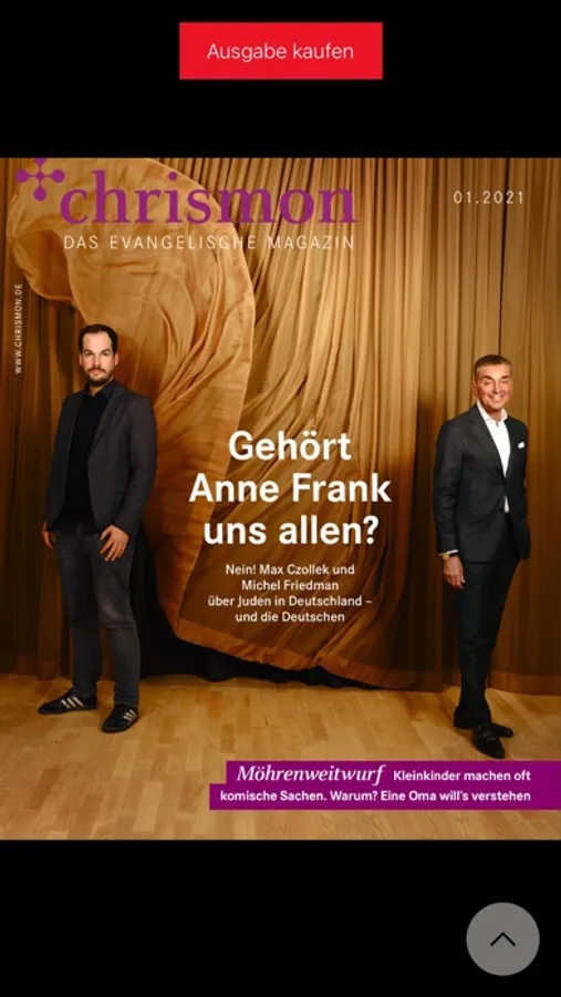 Bitte beachten Sie: Sobald Sie das Abo bestätigt haben, wird Ihr iTunes-Konto mit dem entsprechenden Betrag belastet. Das Abo verlängert sich automatisch um die entsprechende Laufzeit, wenn Sie die Verlängerung nicht bis 24 Stunden vor Ende der Laufzeit in Ihren iTunes-Benutzereinstellungen deaktivieren. Ihr Abo können Sie direkt nach dem Kauf in den Einstellungen Ihres Gerätes einsehen, bearbeiten und die Funktion der automatischen Verlängerung deaktivieren. Eine Rückvergütung ist nicht möglich, sollten Sie das Abo während der Laufzeit kündigen. Sie erhalten in jedem Fall alle Ausgaben bis zum Ende der abgeschlossenen Laufzeit. Weiterführende Informationen zum Datenschutz (https://leserservice.evangelisch.de/datenschutz) und AGB (https://leserservice.evangelisch.de/agb)