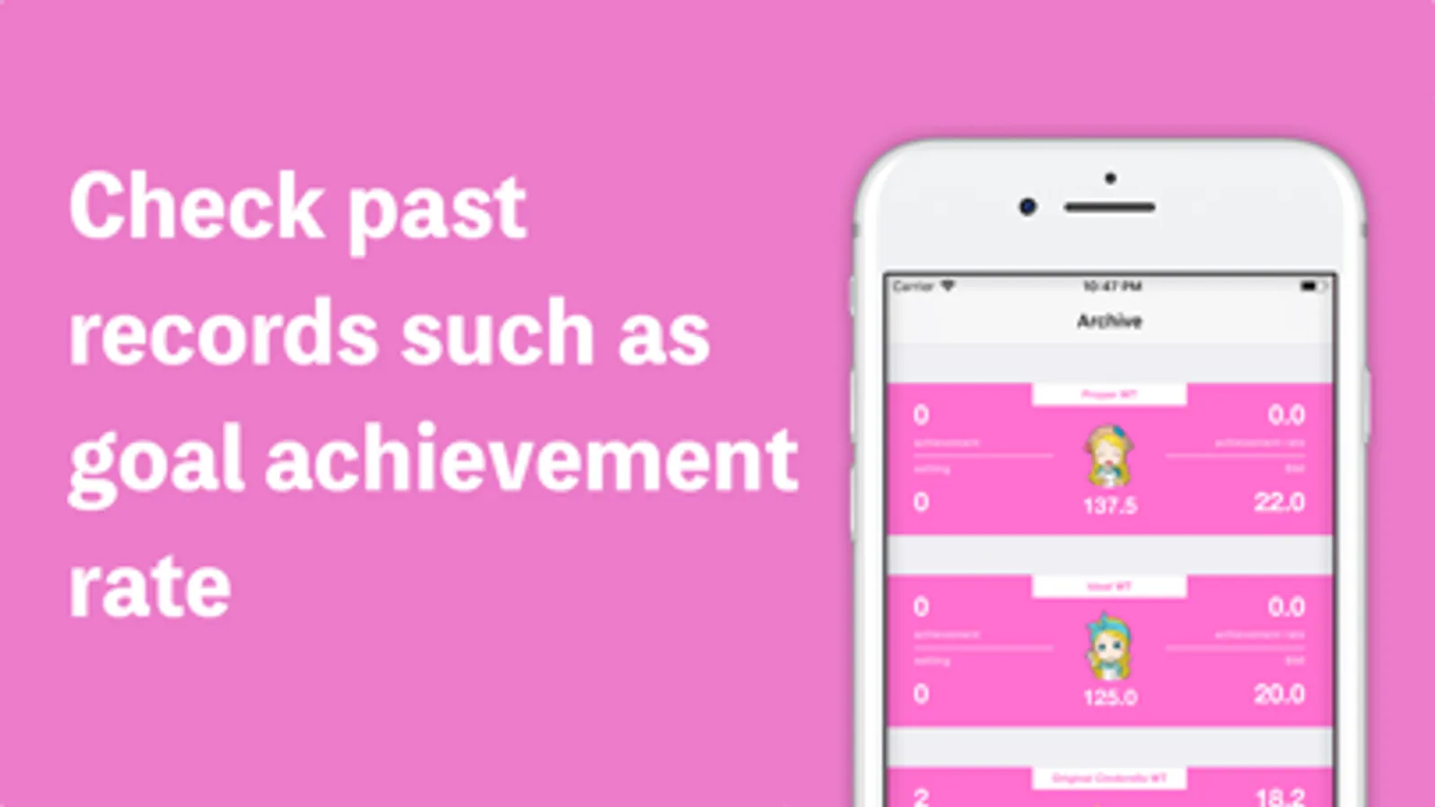 - Maximum weight and minimum weight, average body weight, archive function that the target achievement rate, such as the past record can be checked in the list