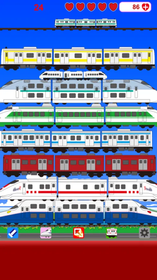 By tapping the icon at the bottom of the screen, you can change the type of the next falling train to Shinkansen or train.