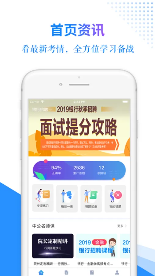 1.详细覆盖各领域考点:题库包含银行招聘,农信社、农商行考试,从业资格考试,铁路局招聘考试,其他国企招聘考试,电网招聘考试,烟草招聘考试等习题,收录各个考试的试卷与备考知识!