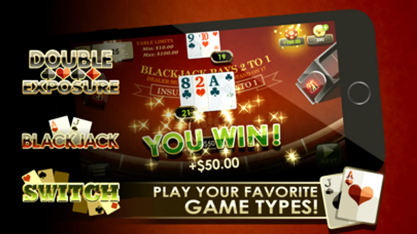 • Three unique game modes: Classic Blackjack, Double Exposure and Switch Blackjack!
