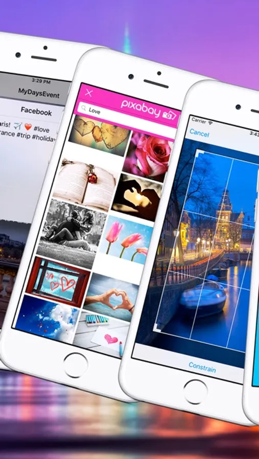 - Choose the event image, from: camera, gallery or search online on Pixabay;
