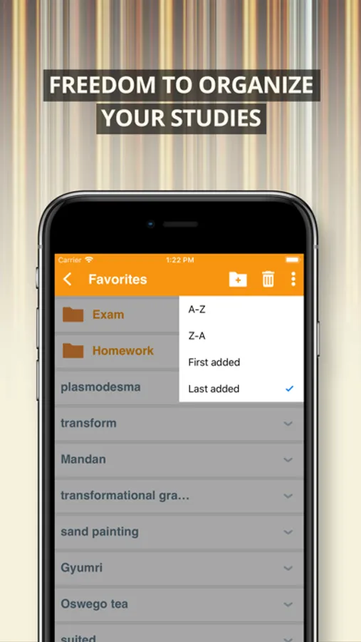 • ‘Favorites’ that allow you to create custom folders with lists of words.