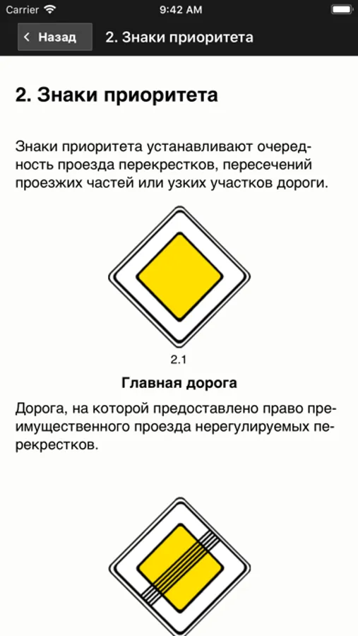 Приложение включает в себя руководство со всеми правилами дорожного движения.