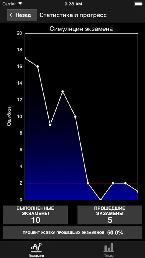 Аппликация сохраняет данные не только каждого выполненного теста, но и каждого вопроса. Предлагаем лучшие системы по статистике, помогающие Вам узнать реальный процент знаний по каждой теме.