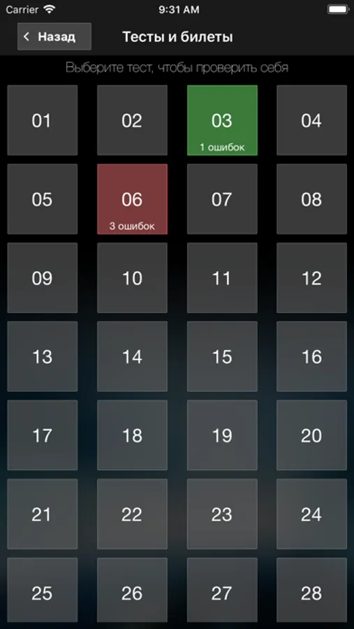 Выполните симулированный тест, который будет предоставлен Вам в день экзамена. После окончания, Вы можете увидеть сделанные ошибки всех ответов.