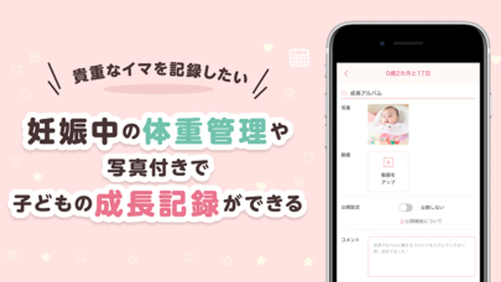 ◆妊娠中の体重管理・赤ちゃんの成長記録機能を搭載!