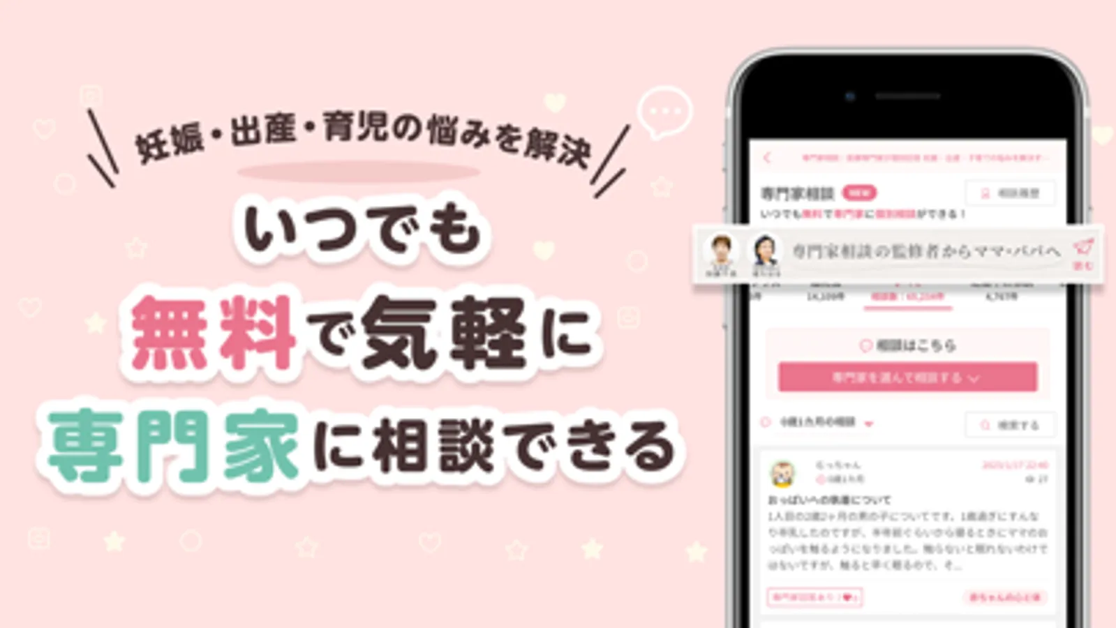 妊娠から出産、赤ちゃんが2歳になるまで毎日専門家のメッセージが届きます