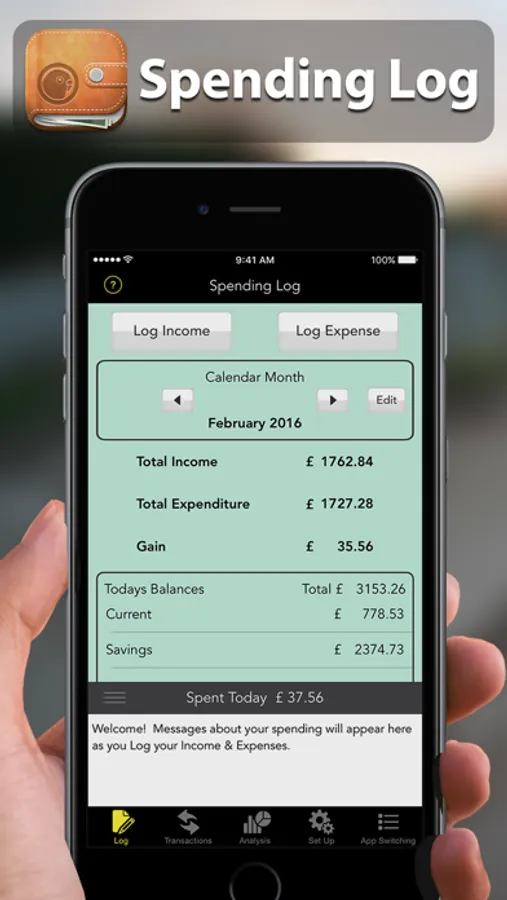 'Spending Log' logs your income and expenses so you can keep track of where your money is spent. You can keep track of your money going out of and in to different accounts and can categorise these transactions for easy analysis.