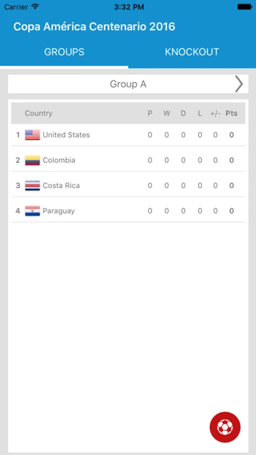Calendar and table of Copa América Centenario 2016 for people who love and are interested in football. The application will help you quickly determine the tournament position of your favorite team.