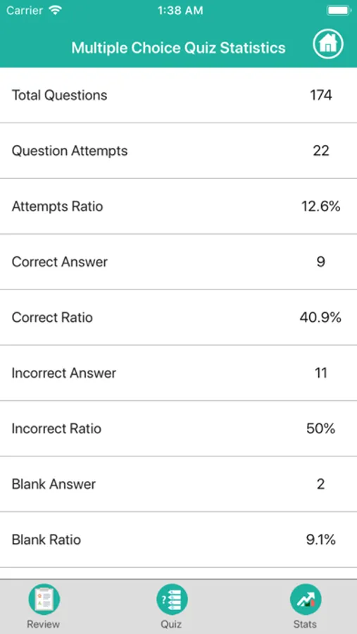- View quiz performances by Multiple Quiz and True False Quiz mode by seperate.