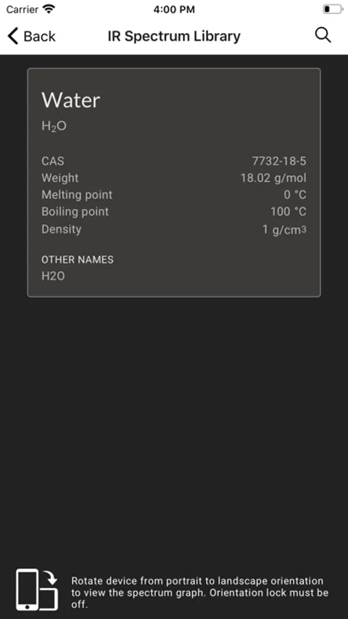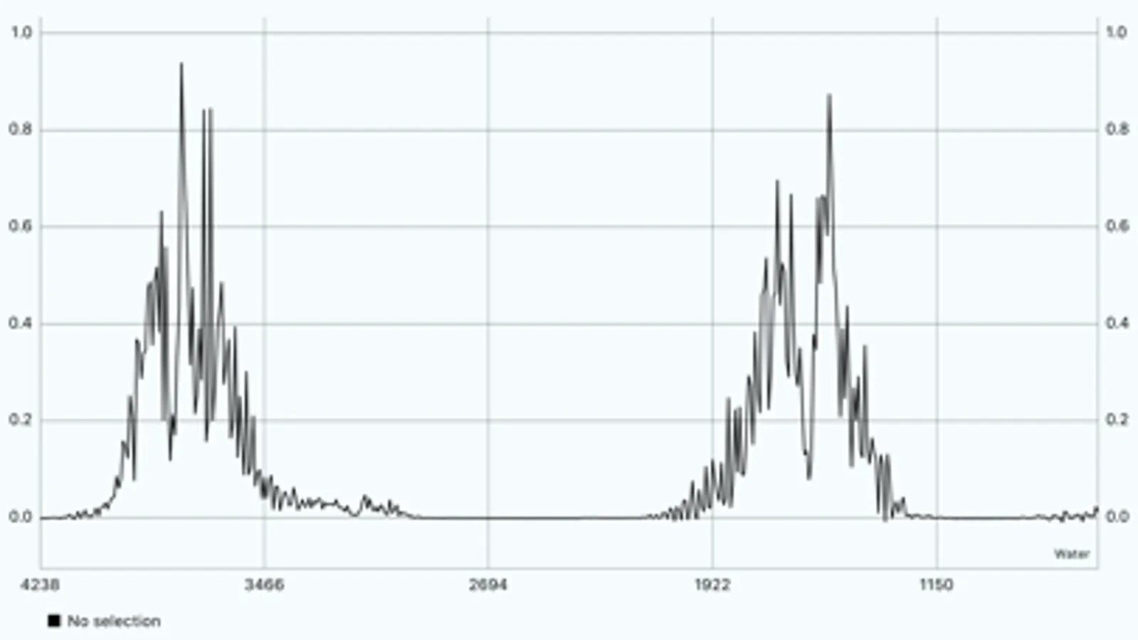 An IR spectrum is a graph of infrared light absorbance on the vertical axis vs. wavelength on the horizontal axis. The units of wavelength are wave numbers (cm−1), but this app displays also the micrometers (μm) above the spectrum. Vertical axis and horizontal axis can be zoomed in independently.