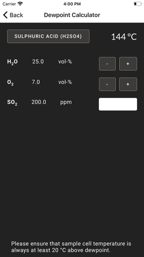 Dewpoint calculator: Calculation of water dew point and Sulfuric acid dewpoint helps in planning the sampling setup so that the sample gas does not condense in your gas analyzer. Please note that the calculation is always an estimate based on the parameters entered. For Sulfuric acid the Okkes formula is used.