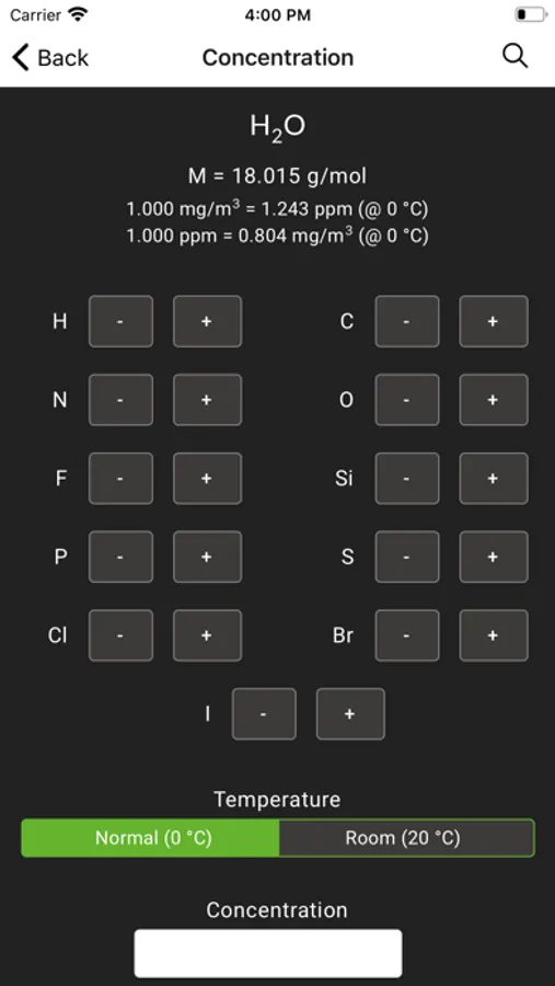 Unit conversion includes 3 converters; Concentration, pressure and temperature. Conversion of concentration mg/m3 from ppm and vice versa, supports different reference temperatures for NTP and STP. Pressure conversion includes units millibar, bar, kilobar, hectobar, pascal, kilopascal, hectopascal, atmosphere (standard), millimeter of water (4 °C), centimeter of water (4 °C), inch of water (4 °C), foot of water (4 °C), millimeter of mercury (0 °C), foot of mercury (0 °C), torr, gram-force/square centimeter, kilogram-force/square centimeter, pound/square foot, pound/square inch, kilopond/square centimeter and kilopond/square meter. Temperature converter converts units between celsius, fahrenheit and kelvin.
