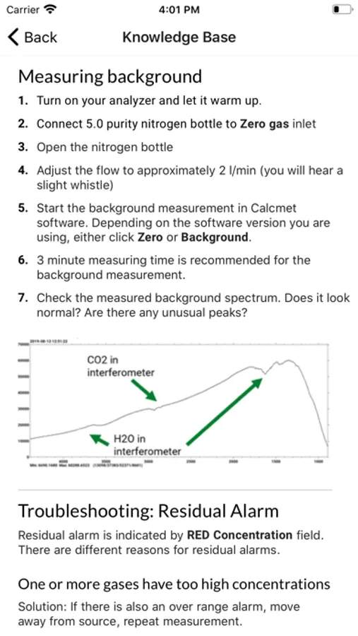 Knowledge base: Quick instructions how to measure background, troubleshoot residual alarm and use identification tool (Calcmet 14) in Gasmet portable analyzers.