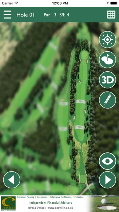 The app features the Whole in One Golf GPS Range Finder and Digital Guide to playing the clubs 18 hole golf course. The App works as an virtual aid, giving you a 3D Flyover of each hole, a pin positioning system.