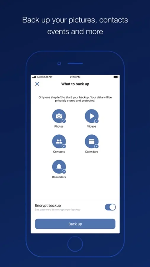 Acronis Cyber Protect is a mobile app for businesses that lets you back up and recover contacts, photos, videos, reminders, and calendars from your mobile device. The Acronis Cyber Protect mobile app is designed for use with the business-focused Acronis Cyber Cloud service and requires an account there.