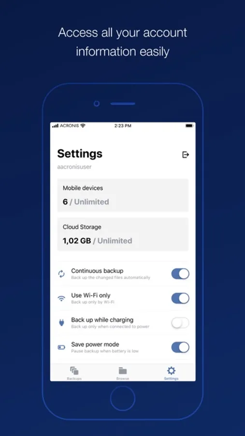 • Stay protected with backup to the cloud via Wi-Fi and cellular connection, or exclusively back up via Wi-Fi to save on data usage