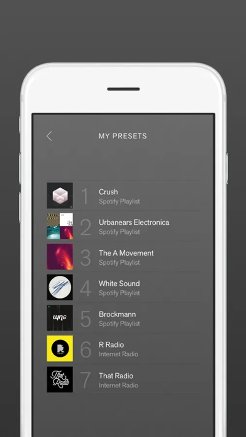 Save up to 7 of your favorite playlists from Spotify and internet radio so they’re ready for instant play. Save, play, and change presets inside the app or directly on your speaker.