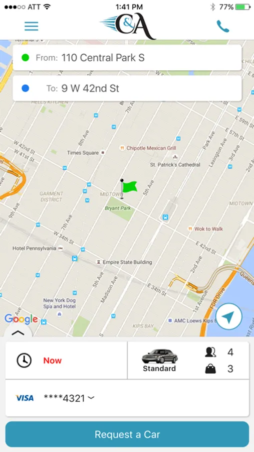 Mobile App to book and manage C&A Black Car reservations.