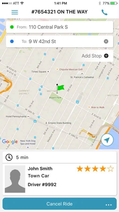 • Driver location and ETA