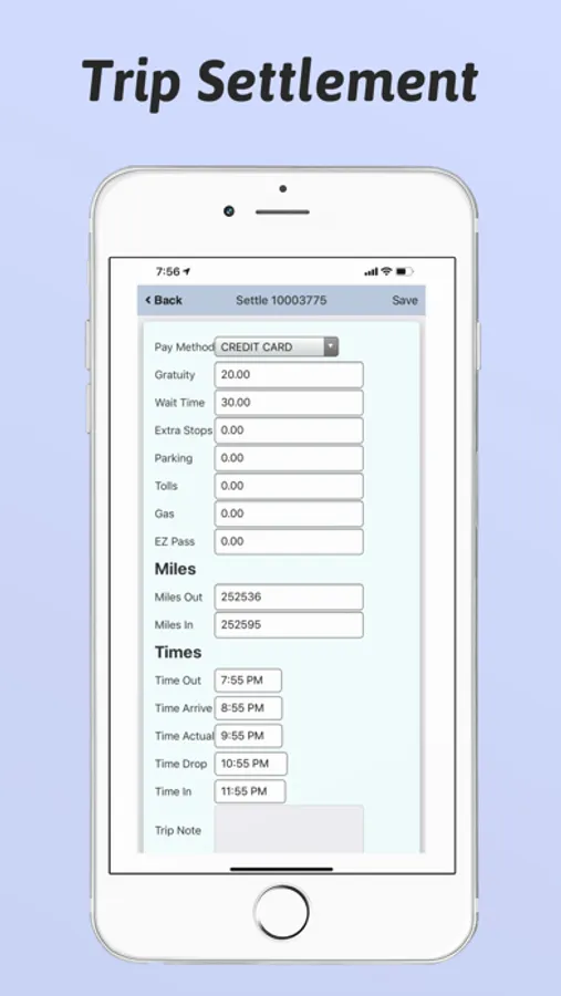 Settle job times. Updates are reflected into LimoWiz desktop program running under Windows.
