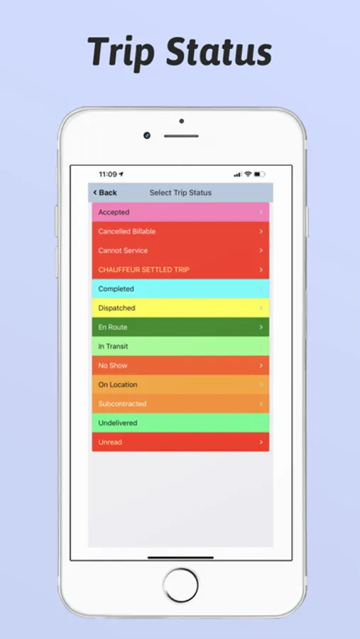 Set job status like In Route, Picked Up, etc.
