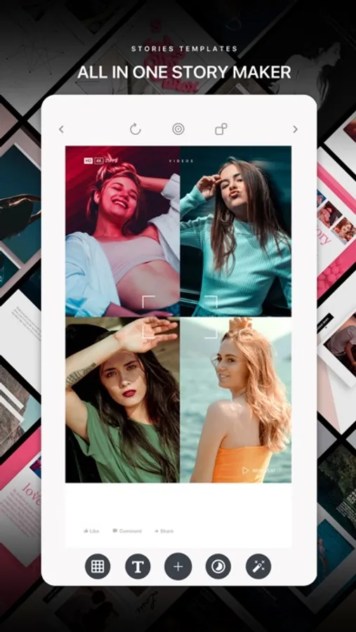 Storíes has everything you need to create amazing collages with your photos, you can customize your story using our story maker, choosing from our collage collection, adding text and photos, stickers and more, your photo to the next level with with just few taps.