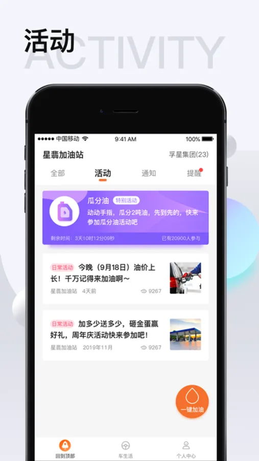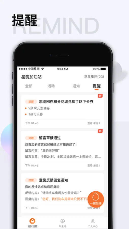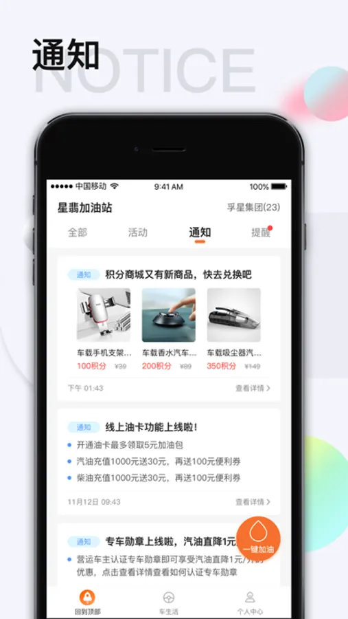 同时让车主随时知晓所绑加油站油价变更、活动等信息,