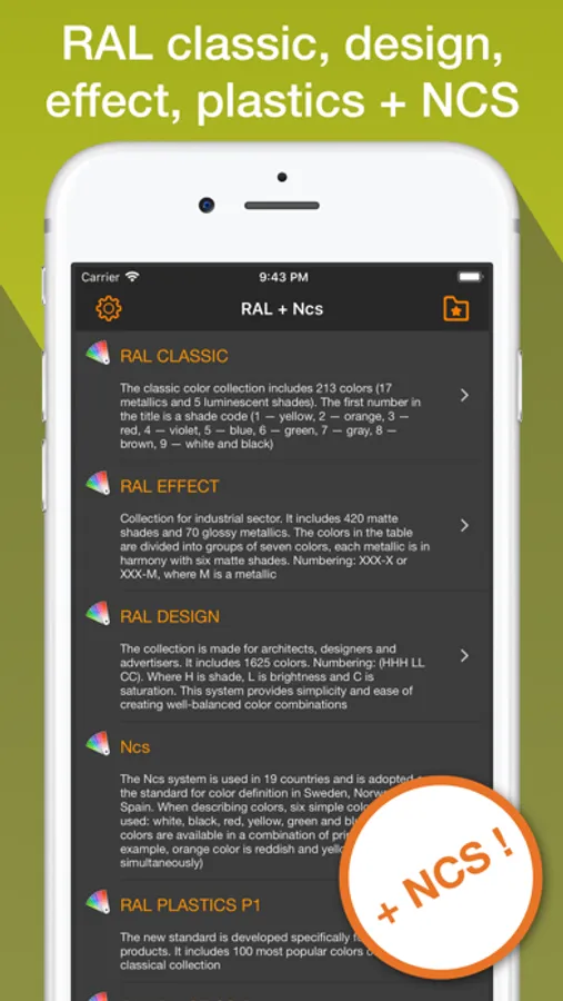 This app is created for true professionals! Thousands of architects, designers, engineers and just creative people from all over the world use our product. All users’ comments and wishes helped to establish a reliable, powerful and useful app. We have developed a physically correct 3D color display and perfected color reproduction. It’s an easy-to-master app, and its reliability and speed of operation will pleasantly surprise you. We can state with confidence that it is the best RAL and Ncs electronic catalog in the world!