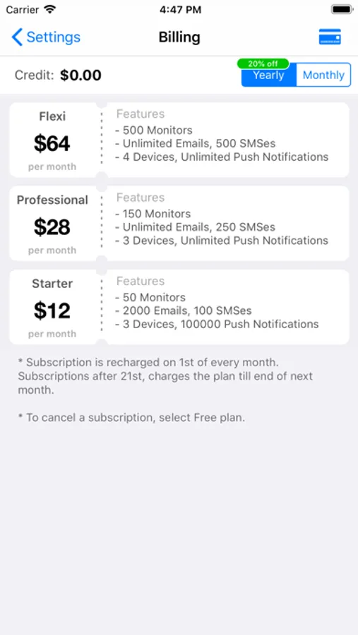 - 1 month Starter($14.99) and 1 month Professional($34.99). A 7-day free trial is available for Starter plan.
