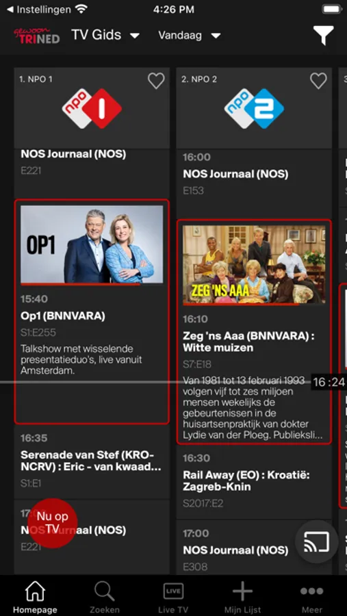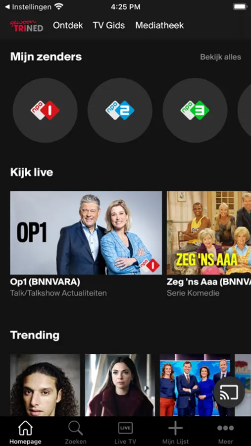 Met interactieve televisie van TriNed kijk je wat je wilt, waar je wilt én wanneer je wilt. Ook is het mogelijk om opnames te programmeren en te bekijken.