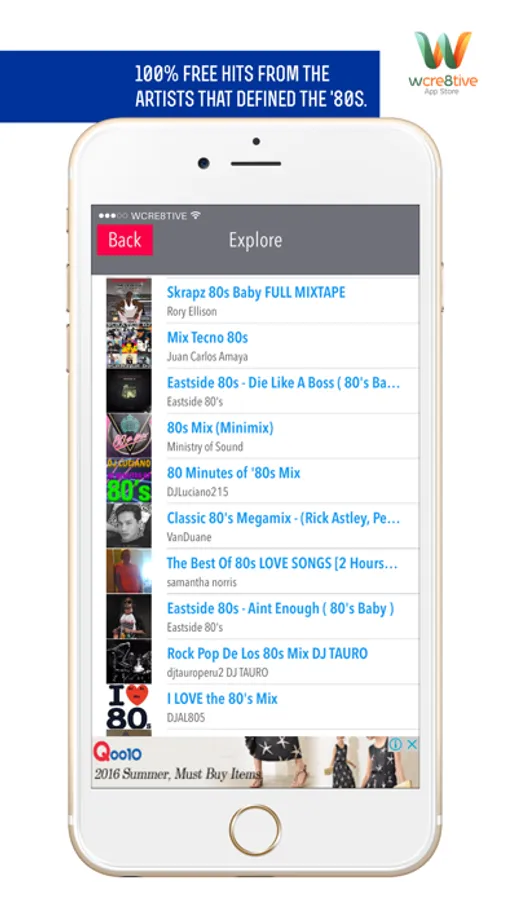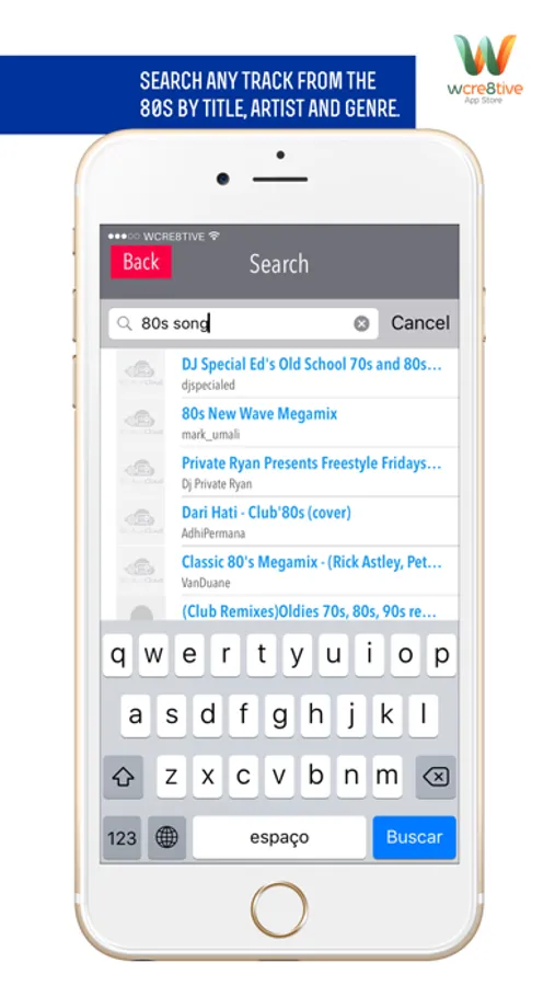 Search any track from the 80s by title, artist and genre. Share tracks with friends via social network accounts and get fun on your next 80s Party.