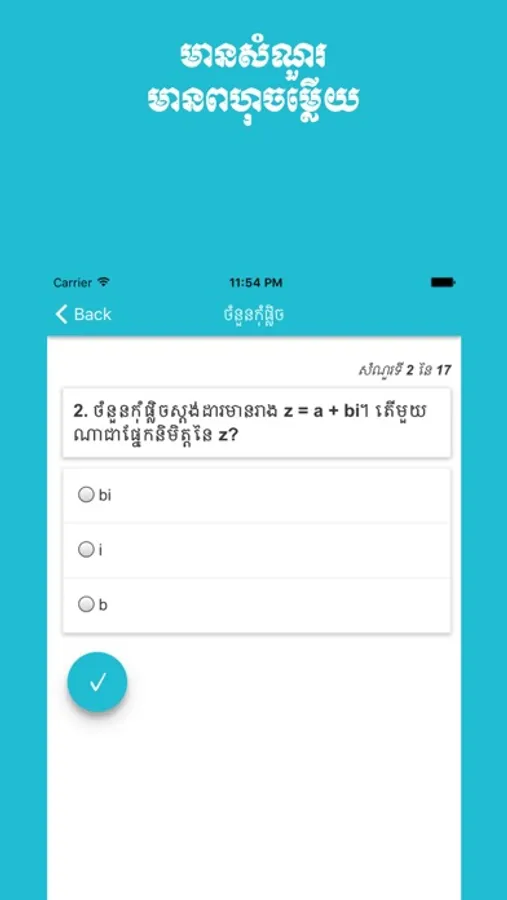 Kunthea Math Quiz app is developed by collecting all lesson, properties, key and method to solve exercises grade12.