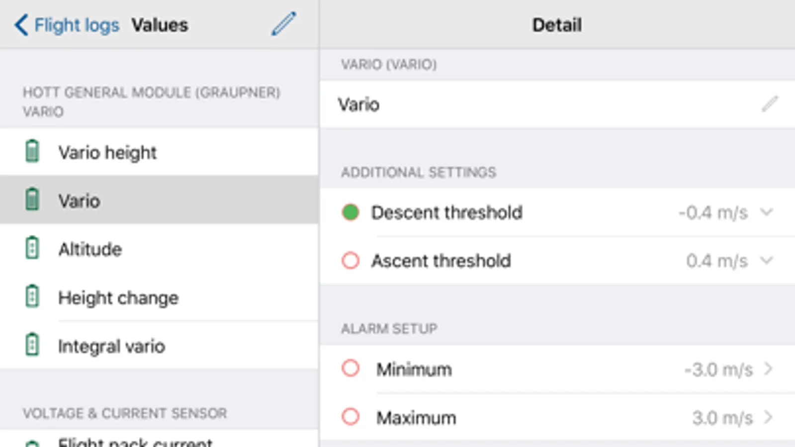 But even if your transmitter is not yet ready for real-time logging, you can jump start exploring the power of iMSB HoTT with the built-in demo flight recordings.