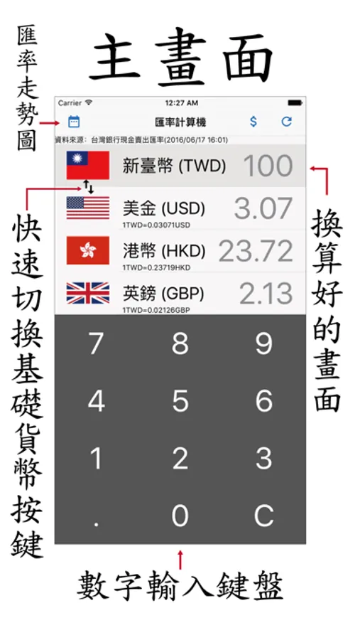 匯率計算機,匯率換算器,匯率換算app,即時匯率查詢的好幫手、匯率小幫手!可離線使用!
