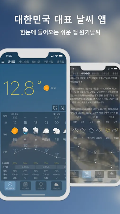 기상청 모바일 앱 공모전 우수상 수상작인 원기날씨는 기상청에서 제공하는 데이터를 바탕으로 동/읍/면 단위의 날씨 정보를 제공합니다.
