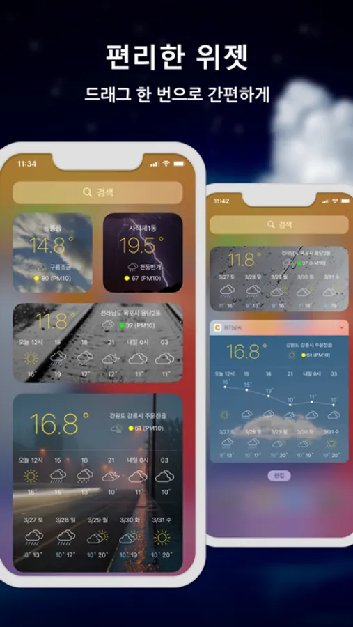 다양한 크기의 위젯을 드래그 한 번으로 간편하게 확인할 수 있습니다.