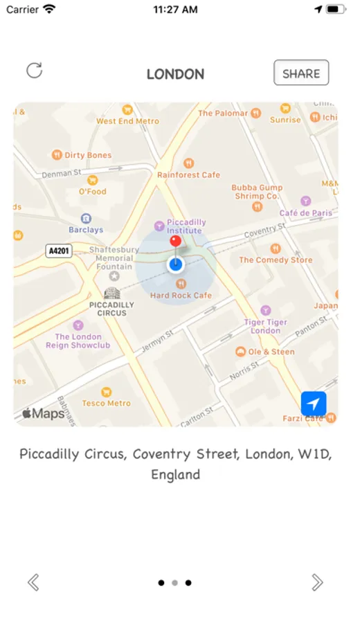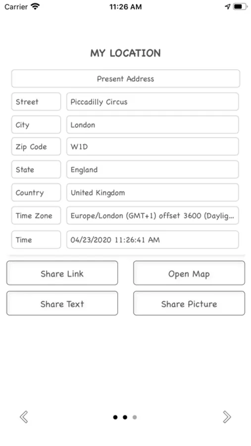 This app will allow your to share Text Location, Link of location and Image of your current location. Also you can redirect to map with your current location from this app.