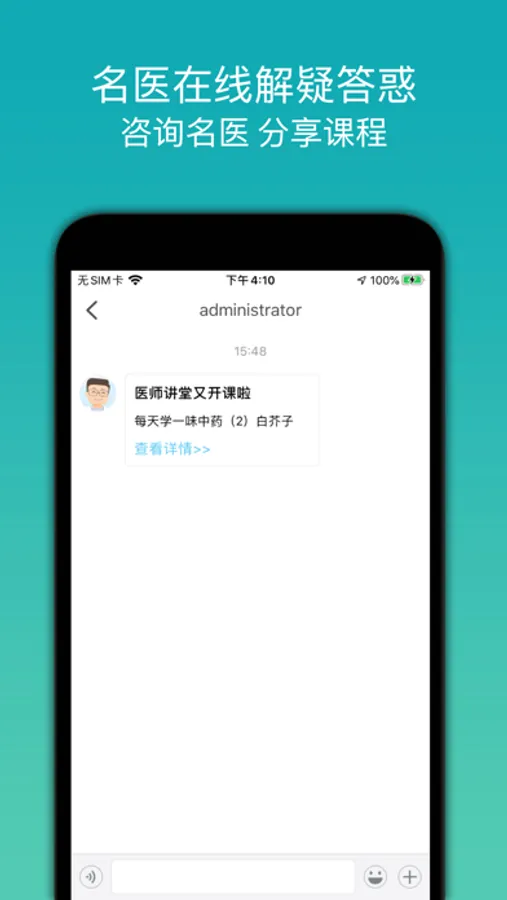即时通讯: 村医可针对关注的全科医生进行私信沟通,解决一对一有效沟通的问题,在聊天中可以发送文字、语音、图片、视频、表情等,独有的安全聊天让您的聊天信息更加安全。