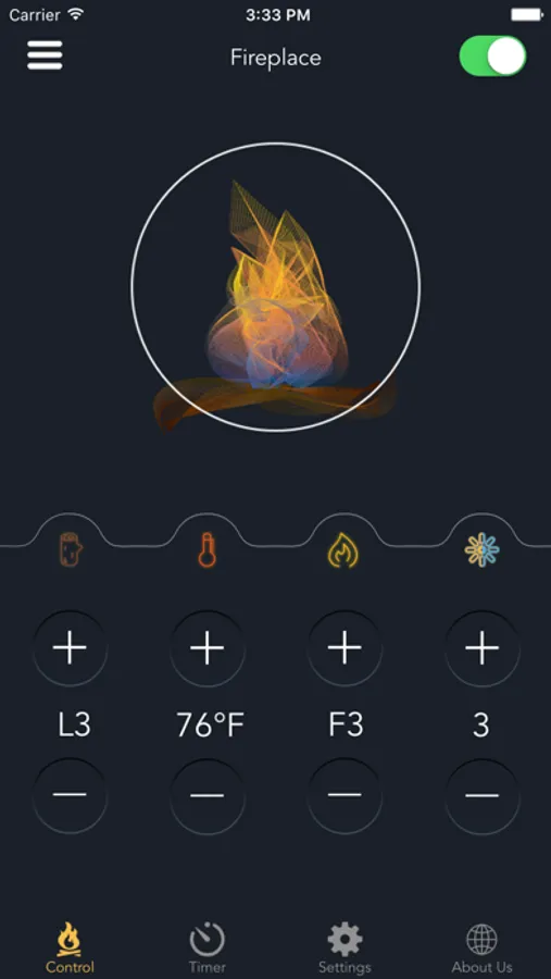 Connect the Electric Fireplace to your smart phone via Bluetooth. You can even connect to multiple fireplaces and customize the settings right in the palm of your hands:
