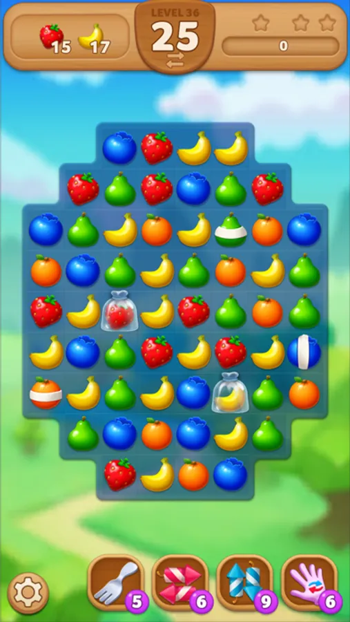 • Fun match-3 puzzle gameplay with cute characters and juicy fruits.