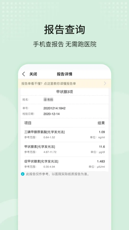 取报告单:化验结果早知道,足不出户晓结果