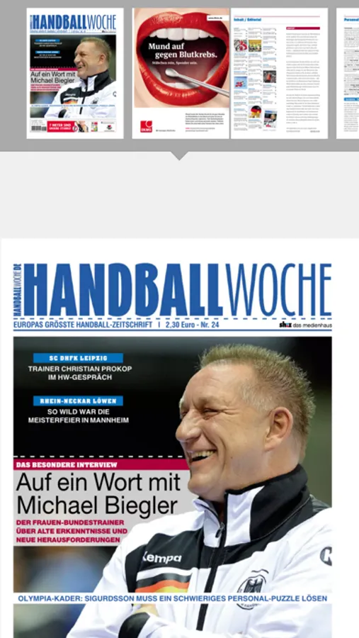 Die HANDBALLWOCHE als ePaper für iOS. Lesen Sie auf Ihrem iPhone und iPad alle wichtigen Geschehnisse der Szene in Europas größter Handball-Zeitschrift.