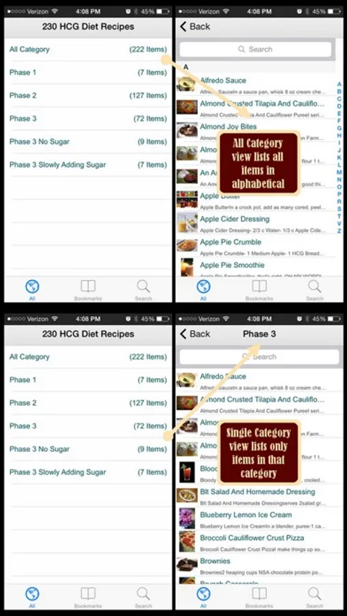 * All Items View to preview all recipes in alphabetical order with thumbnails